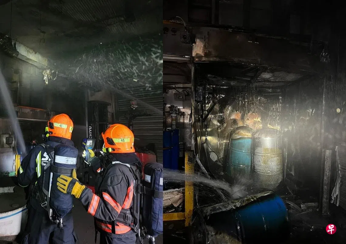 民防部队人员到(Tuas View Lane)的一家工厂后,发现一个储存汽油和易燃物品的仓库冒出滚滚浓烟。消防员与工厂的紧急应变小组(CERT)的成员一齐用两支水管和三支泡沫水管灭火。