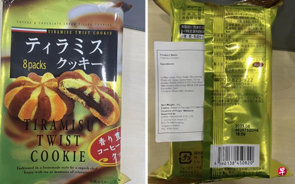 (早报讯)平价零售商“大创”(Daiso)售卖的H&H提拉米苏曲奇饼(H&H Tiramisu Twist Cookies)没在英文包装上申报含过敏原成分,新加坡食品局已下令召回。