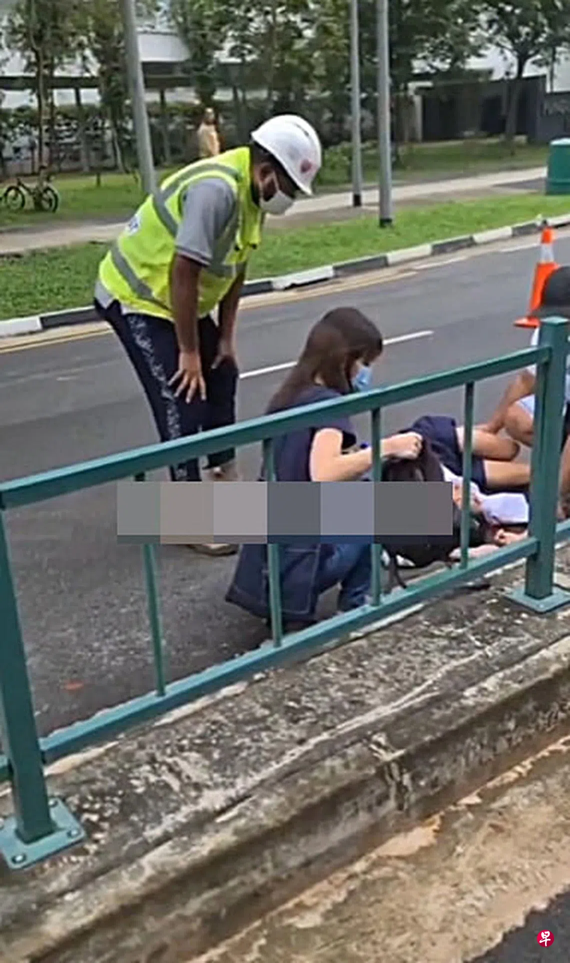 根据网上流传的视频显示,一名身穿校服的男生倒卧在路中央,身体抽搐,神情痛苦,一名女子和两名男子在旁协助他,其中一名男子也安抚男生,说救护车已在赶来的路上。