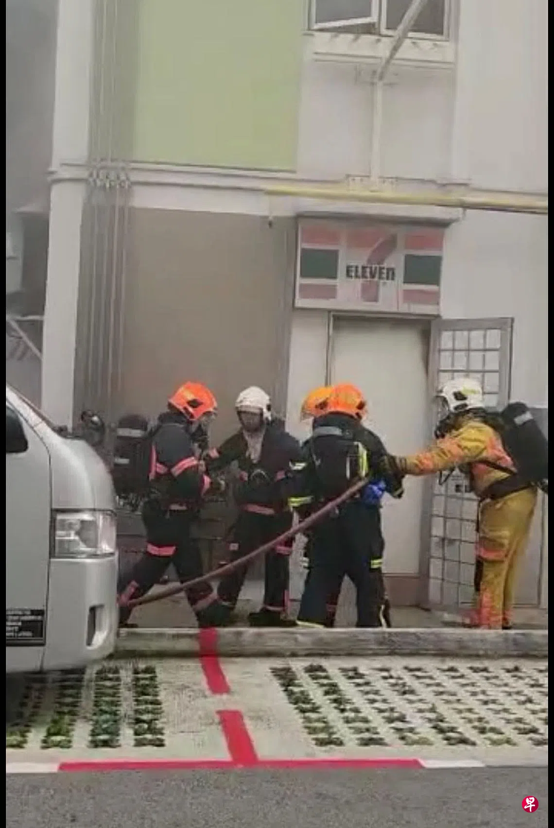 (早报讯)德曼花园一间7-11便利店发生火患,消防员撬开储藏室后门进入灭火,一人因吸入浓烟送院治疗。