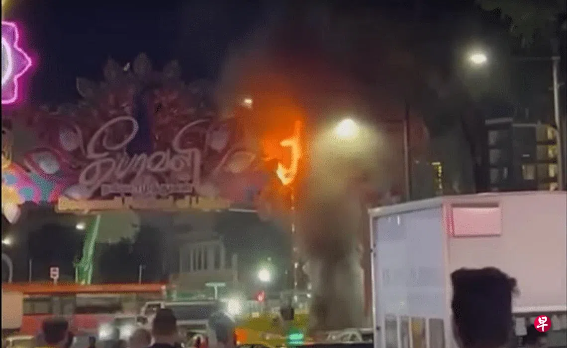这起火患在星期一(11月7日)晚上9时许发生,火势从小印度街道上挂起的屠妖节灯饰烧起。
