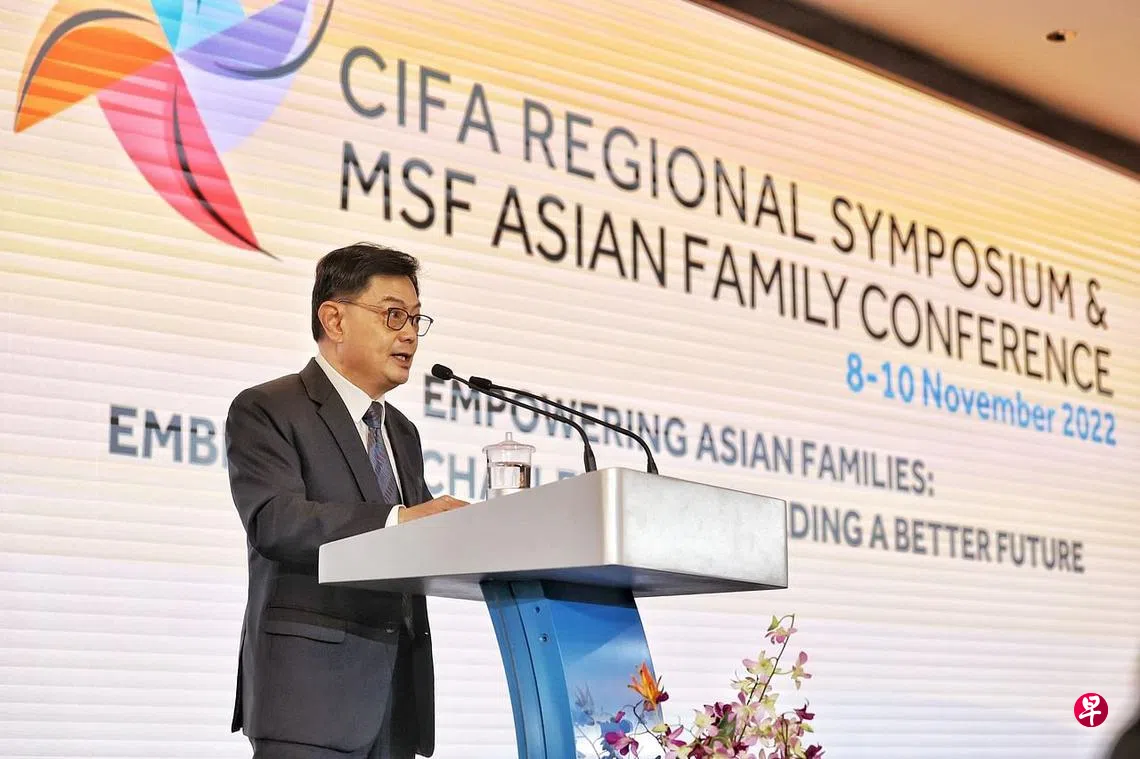 副总理兼经济政策统筹部长王瑞杰星期二(11月8日)在亚洲区家庭研究联盟和社会及家庭发展部亚洲家庭研讨会上致辞,宣布“为家庭而设2025”(A Singapore Made For Families 2025)计划。这项计划涵盖培养亲家庭文化、加强家庭关系,以及扩大对有需要家庭的援助这三大方面。