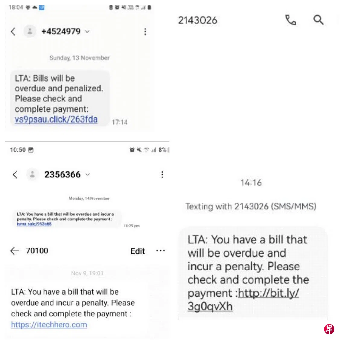 受害者一般会收到以陆交局的名义发出的钓鱼短信,称受害者有尚未缴付的罚款或账单。