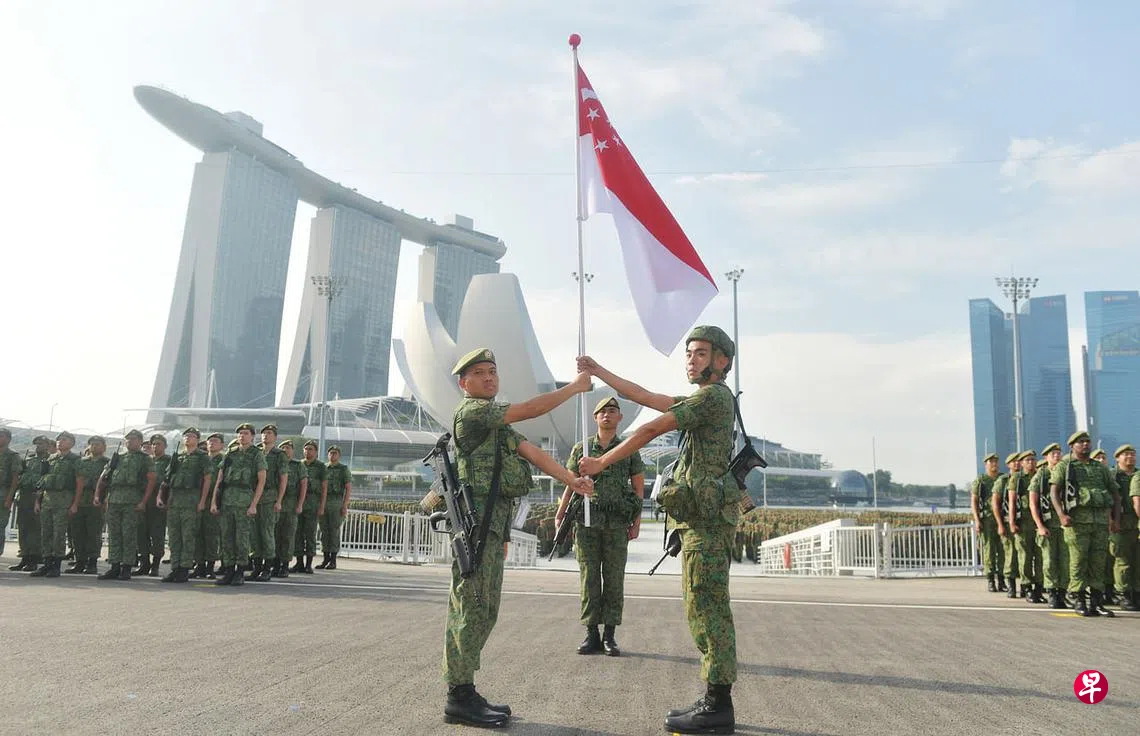 (早报讯)配合国民服役55周年,滨海湾浮动舞台上同时举行战备军人的退役仪式,以及全职国民服役人员基本军训的结业仪式。即将退役的战备军人将国旗交给新一代的全职国民服役人员,象征捍卫国家的重任的传承。