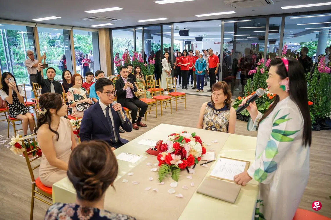 (早报讯)即日起,新人不仅能在滨海湾花园的家庭互动区举行结婚宣誓仪式,一家大小也可在这里参加各种家庭活动,促进彼此的感情。