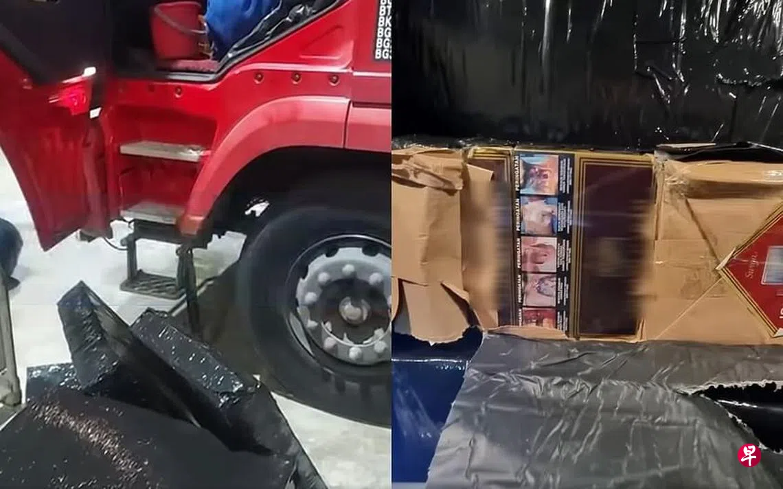 根据移民局上载的视频显示,移民局人员在司机座位后方的床褥发现可疑之处,进一步搜索后找出藏在床单下的漏税香烟和咀嚼烟草。