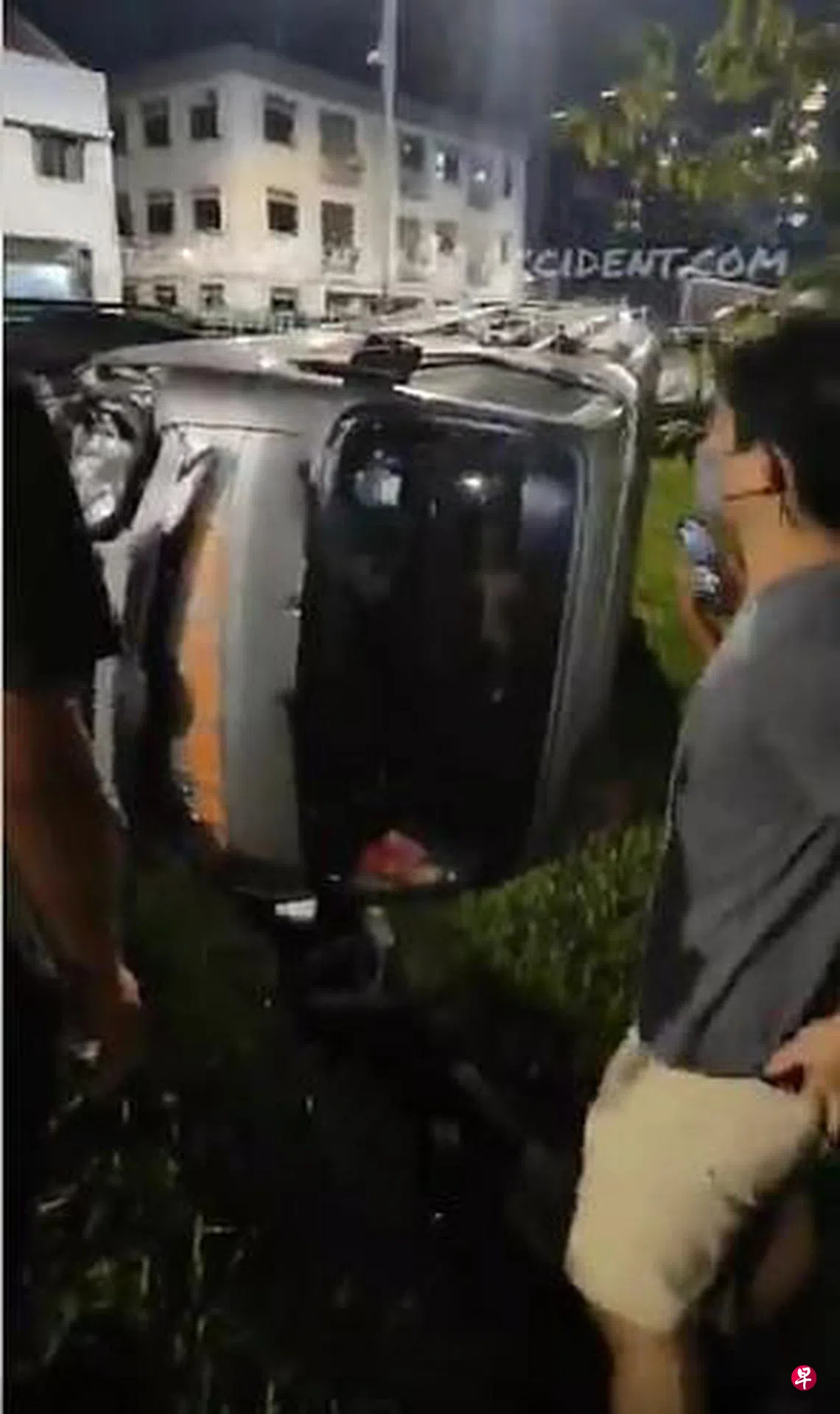 根据脸书专页“新加坡公路意外网页”发布的视频,事发地点的围栏被撞歪,罗厘冲出围栏后侧翻在草地上,一旁散落着不少零件碎片。