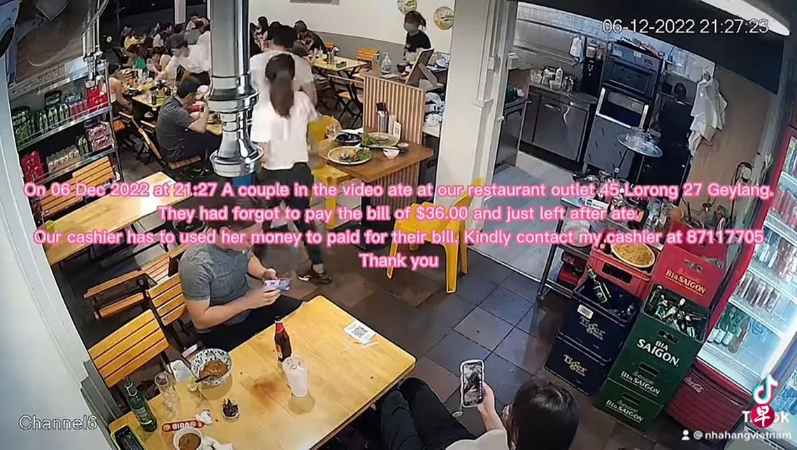 一对情侣吃越南餐后,36元的账单没付钱就离开,店家公开视频寻人。
