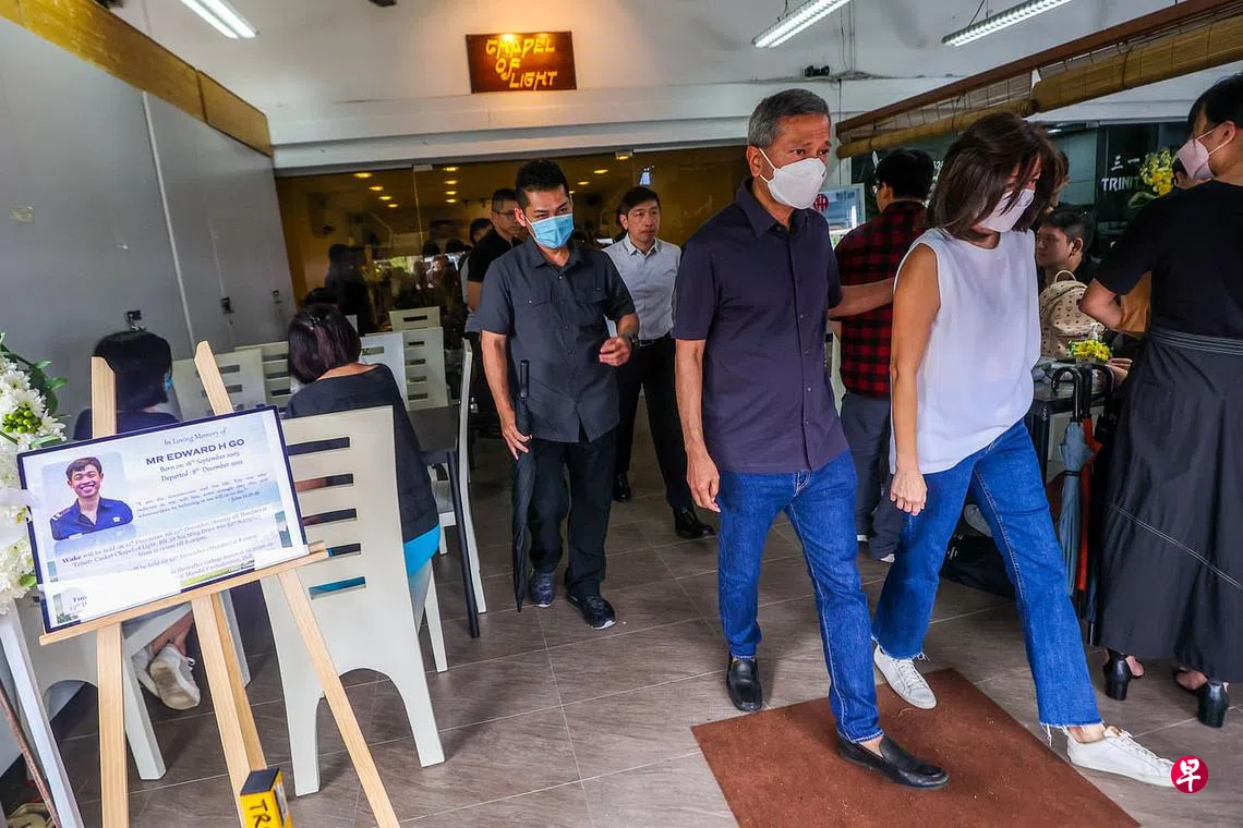 下午2时22分许,外交部长维文医生和妻子到停柩处致哀。他受访时说,自己与吴宏泽的父母认识,并指出大家都对这起事件感到震惊和悲伤。“我觉得这对任何家长来说都是一场噩梦。这可能是任何一个人的儿子,为了服务国家而奉献牺牲。”