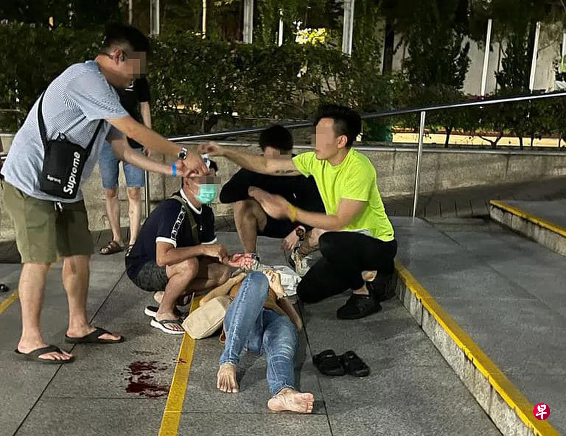 (早报讯)来狮城探亲,七旬老妇走下阶梯时,不慎摔到头破血流,本地好心男子立刻上前施救。