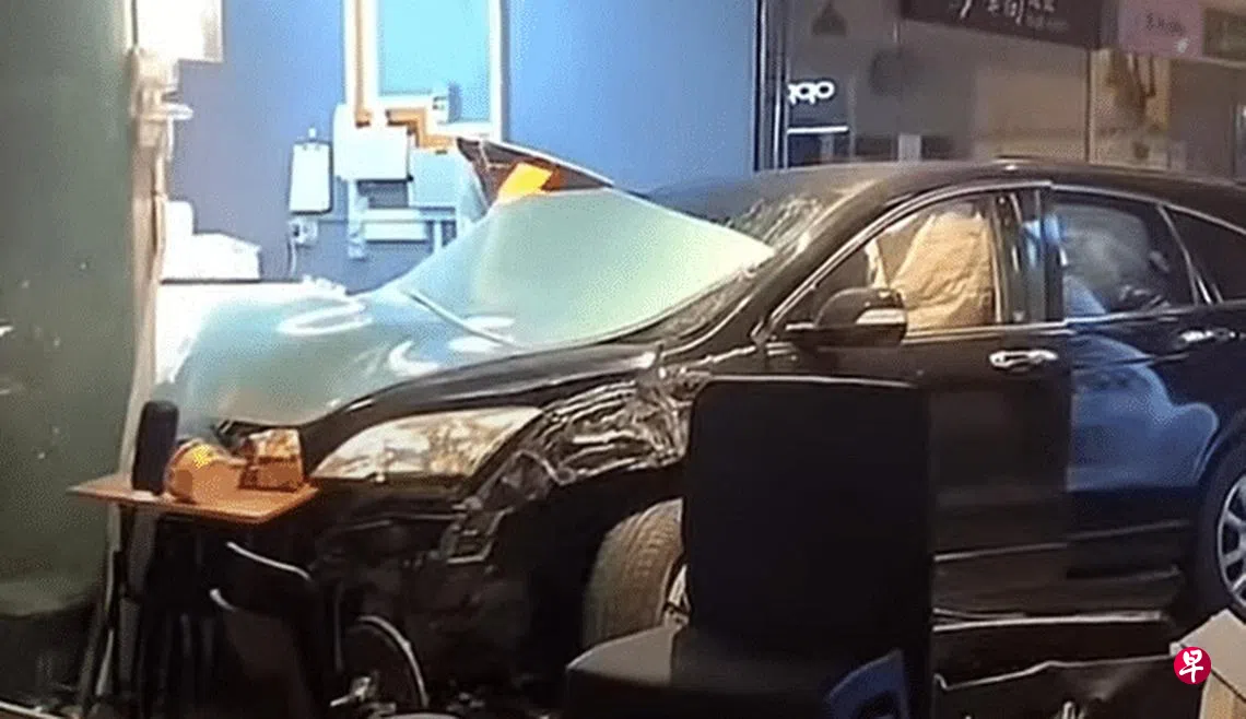 社交媒体脸书星期三凌晨2时许开始流传一段约35秒长的视频,内容可见一辆黑色汽车冲上路堤后,撞上一家商店前方的桌子后才停下。
