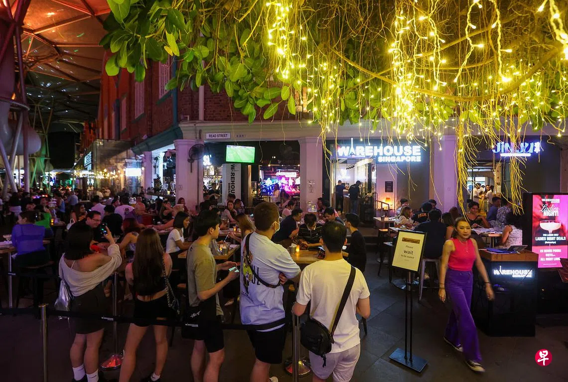 (早报讯)在被冠病疫情笼罩两年后,克拉码头一带的餐馆与酒吧迎来首个社交聚会人数不受限制的平安夜,记者走访的餐馆与夜店几乎客满,当中好几间座无虚席,但人头攒动的盛况并未出现。
