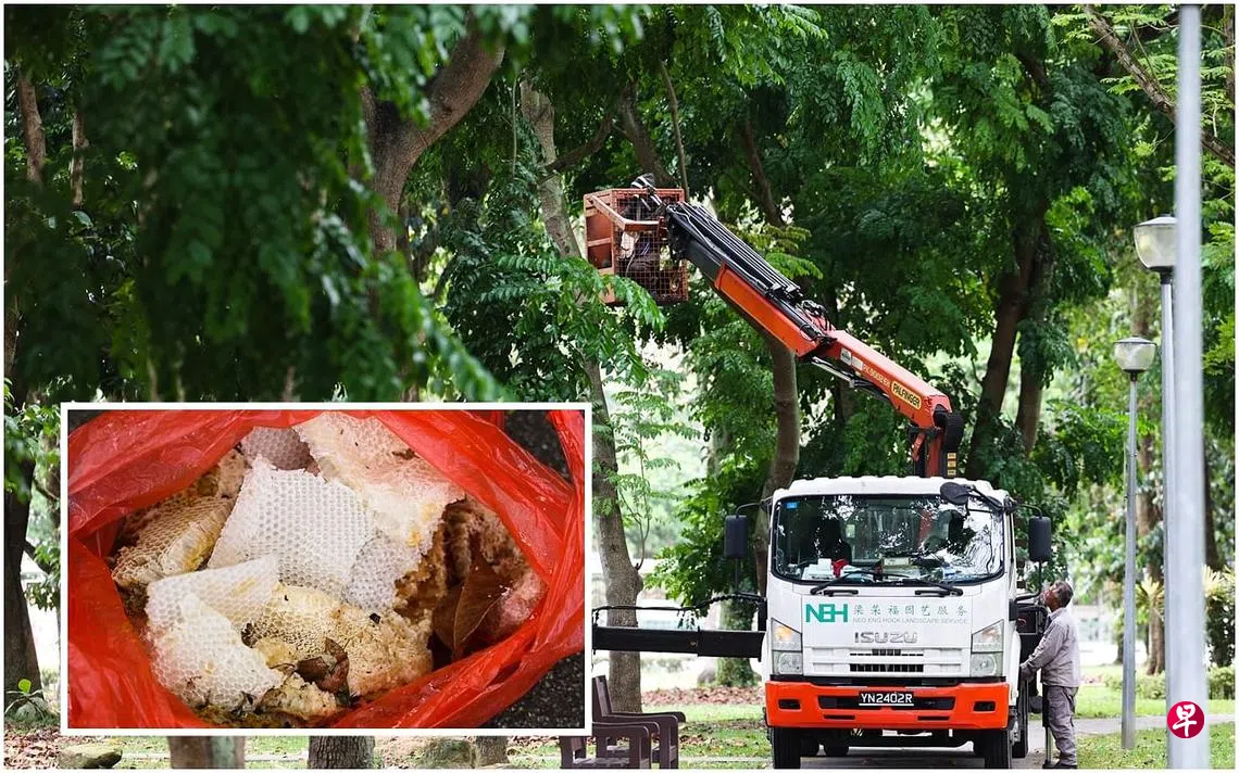 (早报讯)勿洛蓄水池公园蜂巢疑被大风吹落,蜜蜂倾巢而出,蜇伤晨运公众,五人送院治疗。