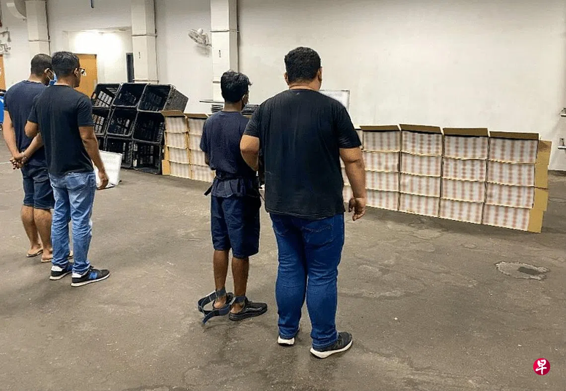 (早报讯)两名孟加拉籍男子被指到一栋空置工业大楼内“取货”,结果被新加坡关税局人员逮个正着,当局之后也起获超过2500条漏税香烟。