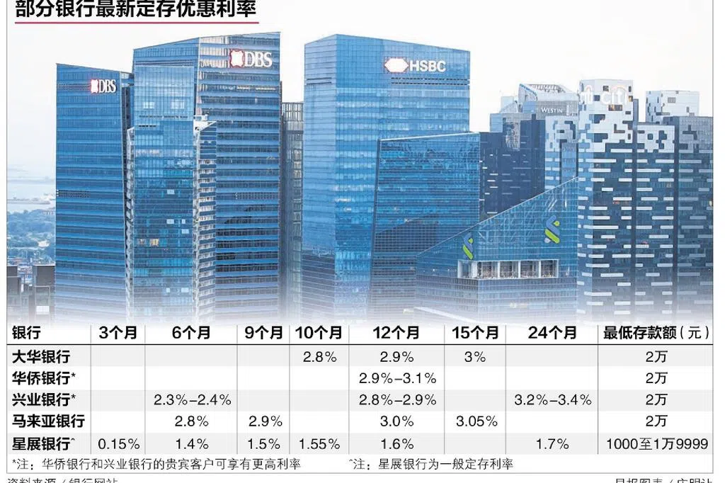 华侨银行一般客户最高促销利率可达3.55%,贵宾客户最高甚至可达3.9%。大华银行则推出六个月定存促销,金额从1万元起,利率介于3.55%至3.95%。