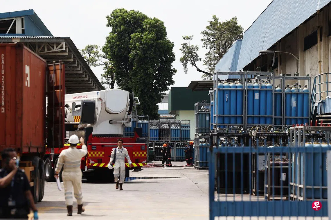 (早报讯)大士工厂爆炸案导致一死一伤,人力部初步调查结果显示,火患是由气桶失控释放易燃气体氧乙炔桶(acetylene)导致爆炸引发的。当局已下令公司停止所有与易燃气体检查和维护有关的工作。