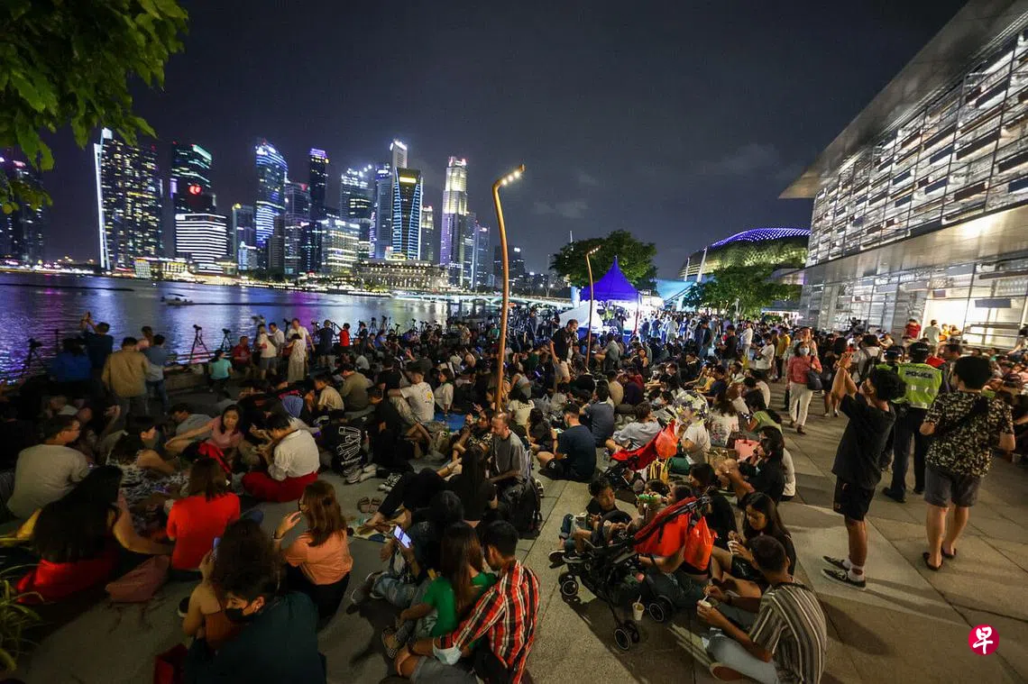 (早报讯)滨海湾一带跨年人潮再次出现爆满的情况,继鱼尾狮公园后,警方宣布暂时关闭富丽顿濒水区(Fullerton Waterfront)、金禧桥(Jubilee Bridge)以及滨海湾金沙活动广场三个区域。