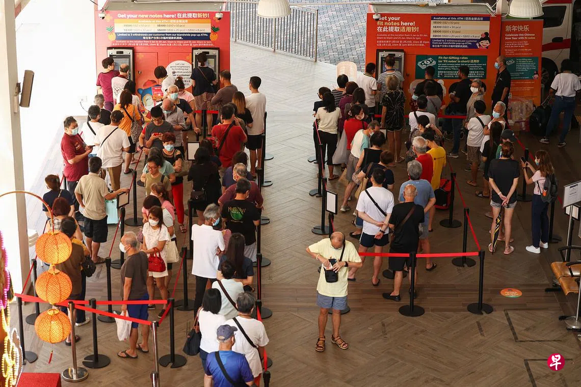 还有约两个星期就是农历新年了。公众即日起可到全岛多个自动提款机提取新钞票和适用钞(Fit-for-Gifting notes),或到各大银行的网站预订时间段领取新钞和适用钞。60岁及以上的年长者及残障者则可直接到银行换钞。