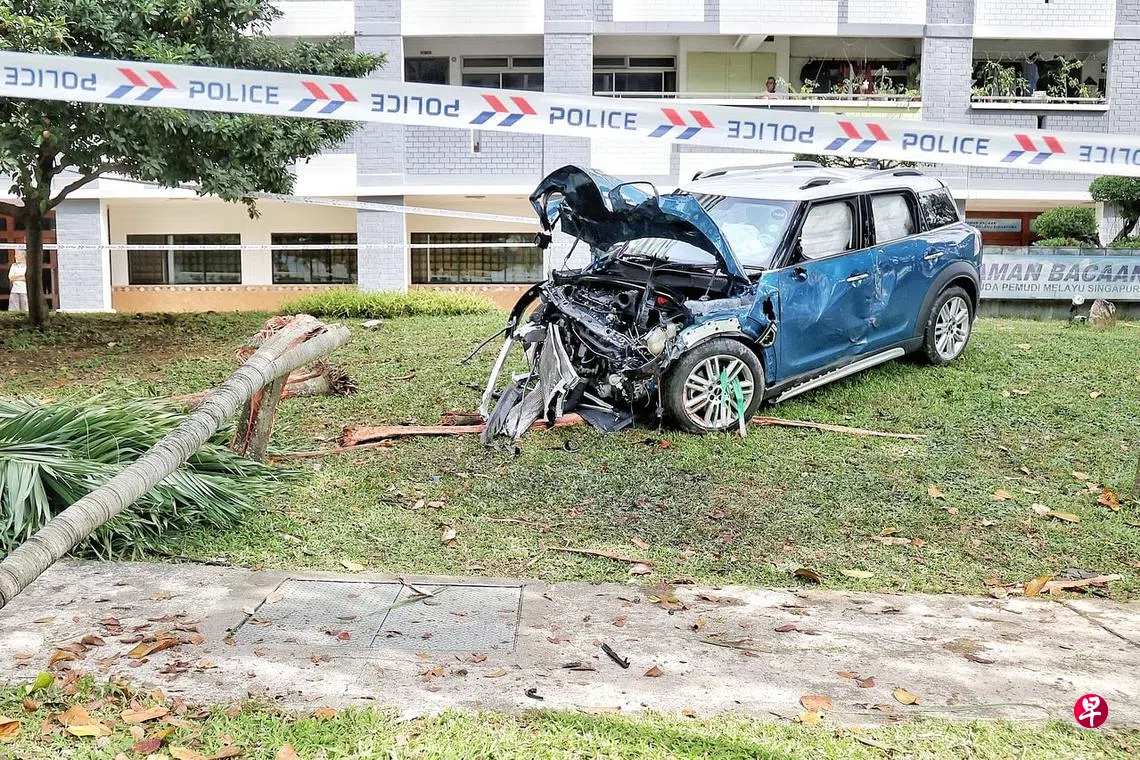 据观察,事发后现场一片狼藉,除了灯柱之外,也有三棵树被撞倒。此外,地上也残留大量碎片。