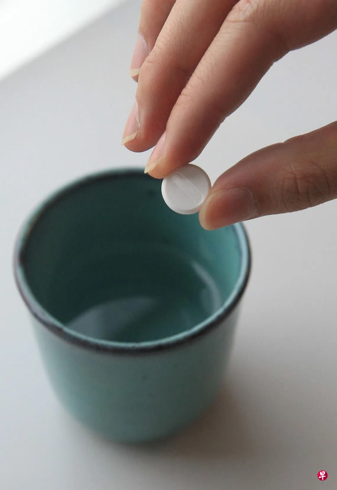 女儿见状又要了多一杯水,第二次把药粉倒进杯子里。