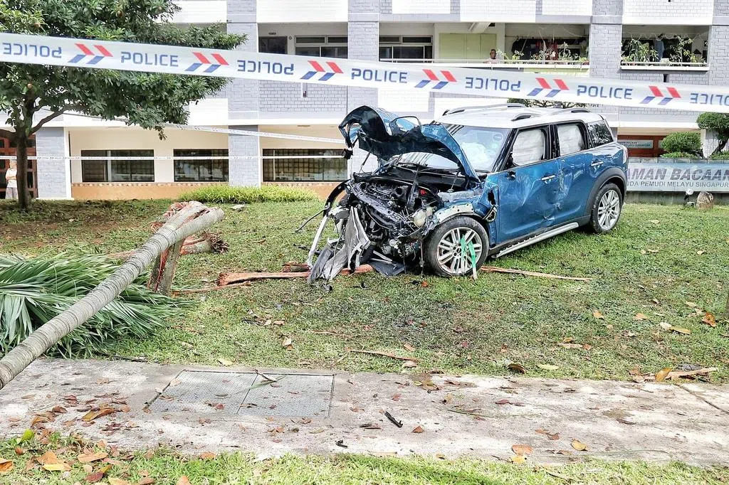 (早报讯)一辆汽车在宏茂桥疑驾驶员失控,疾驰越过安全岛再逆向猛撞停车场闸门,导致另一辆行经的汽车无辜遭殃,所幸无人在车祸中伤亡。