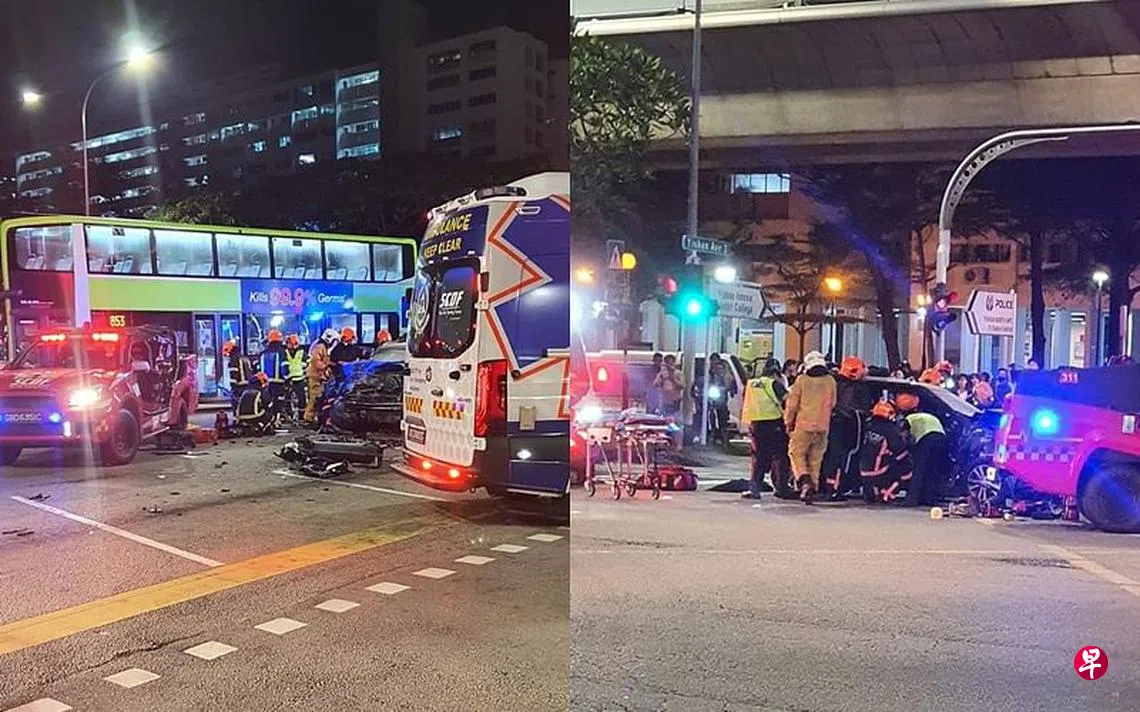 新加坡民防部队答复《联合早报》询问时证实车祸,一名男子受困在驾驶座上,民防人员赶抵现场后,用救援工具将他救出。共有七人被送往邱德拔医院。