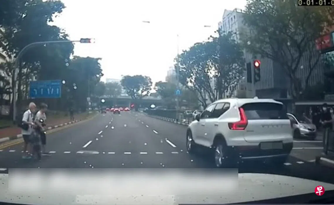 根据脸书页面SG Road Vigilante上载一个约半分钟的视频显示,当时交通灯已转红灯,车子都停下,两名头发发白的年长者看到“绿人”亮起后,随之过马路,两人后方还有一名女子。