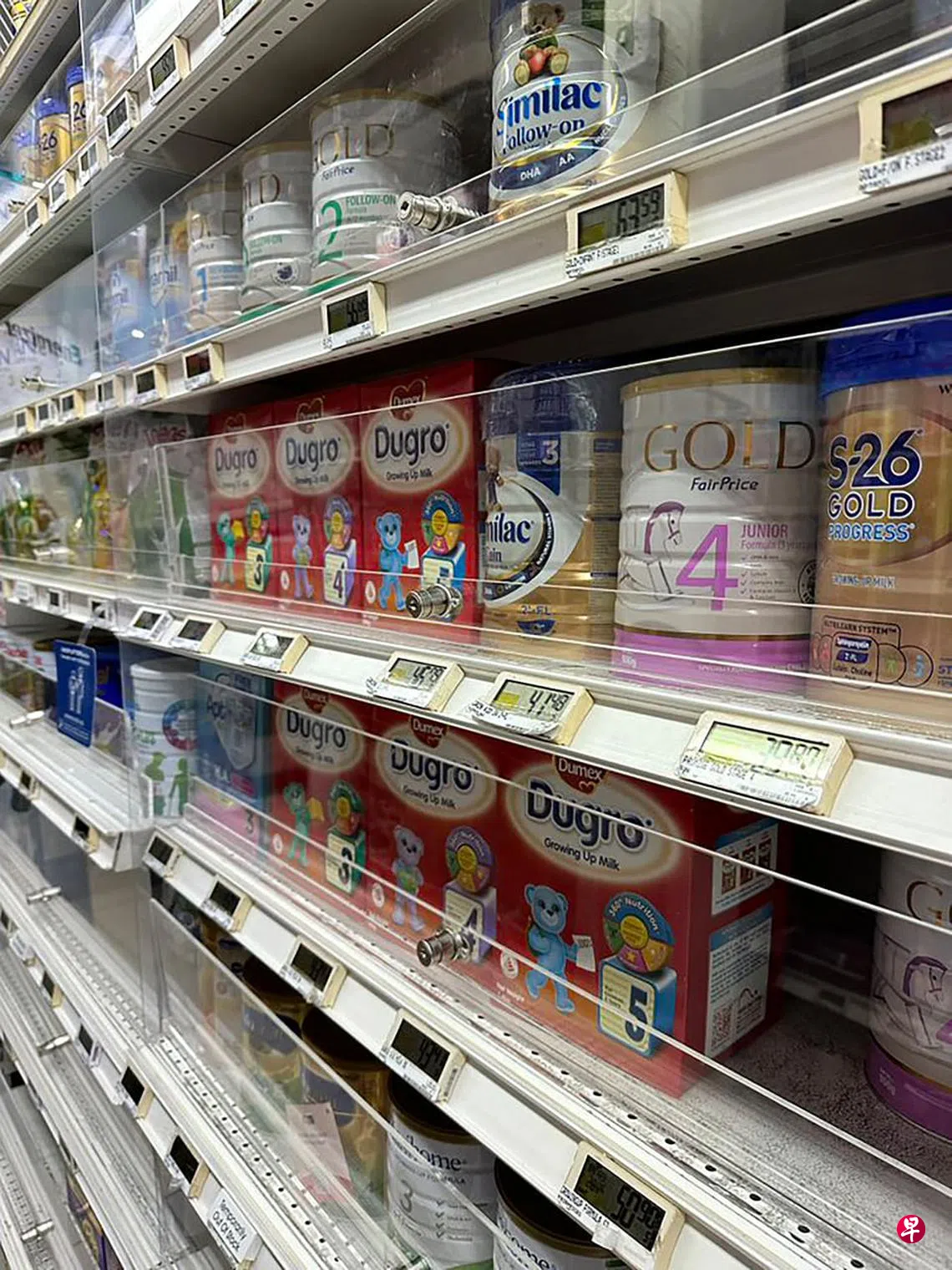 (早报讯)位于武吉巴督地铁站的平价超市为陈列婴儿奶粉的架子上锁,以防偷窃。