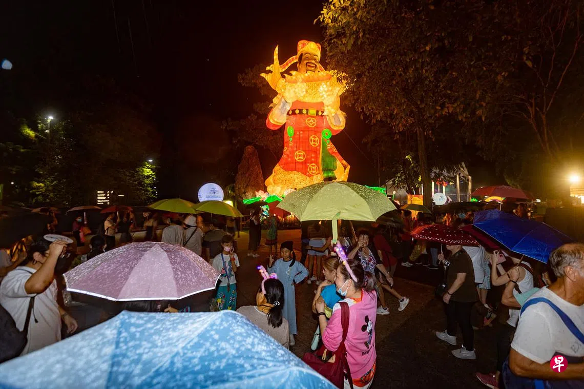 超过1200名受邀嘉宾和公众于星期五(1月20日)晚上齐聚滨海湾花园的海湾舫,与象征财源滚滚的巨型财神爷,以及五彩缤纷的灯饰合影。