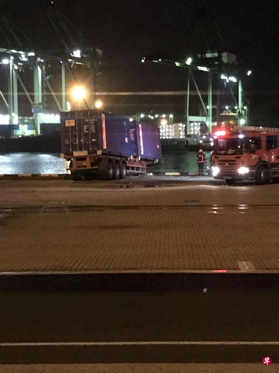新加坡民防部队受询时说,民防人员接获通报后赶抵现场时,连带集装箱的平板拖车就停在码头上,拖车头已经不见。