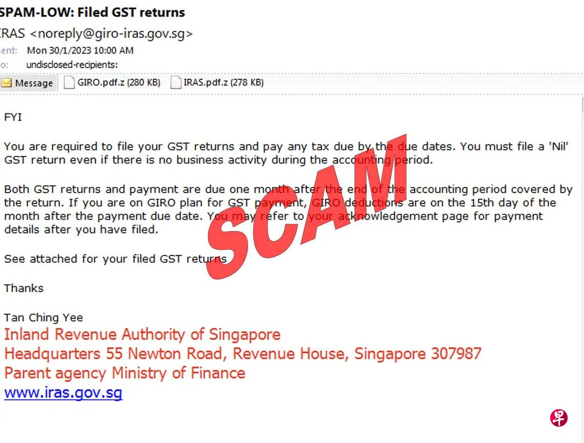 (早报讯)骗子假冒税务局,要求收件者提交消费税申报表,新加坡国内税务局促请公众提高警惕,切勿上当。