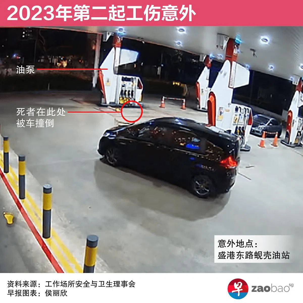 1月19日凌晨1时16分左右,在盛港东路蚬壳油站内被一辆汽车撞倒的66岁新加坡籍男油站职员,则是本地今年的第二起工伤意外。