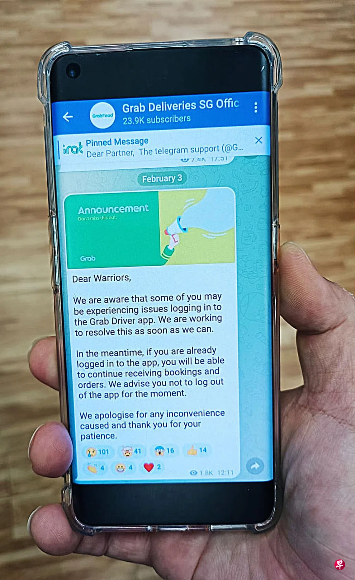 他说送餐平台Grab在中午约12时,就在一个社交群组发讯息,指他们已经发现问题,并要求已经成功登录的送餐员不要退出,避免受到影响。