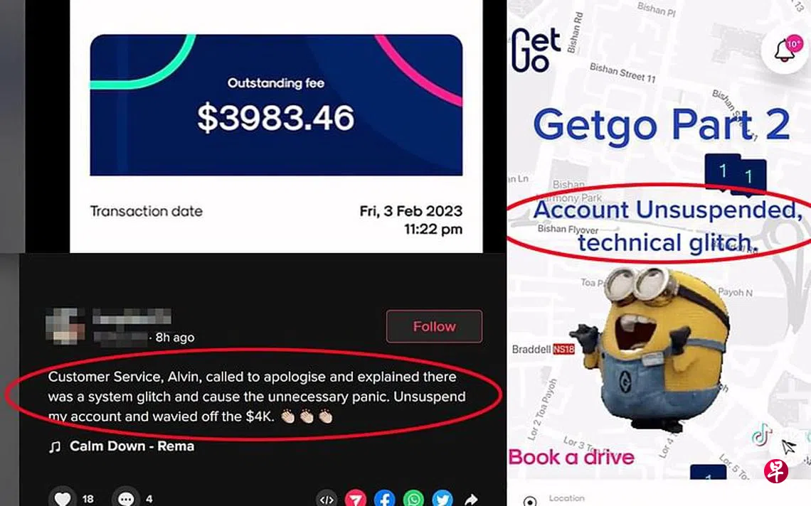 该网民星期一(6日)再上传一段视频说,GetGo的客服人员已联系他,他无需支付近4000元的费用。