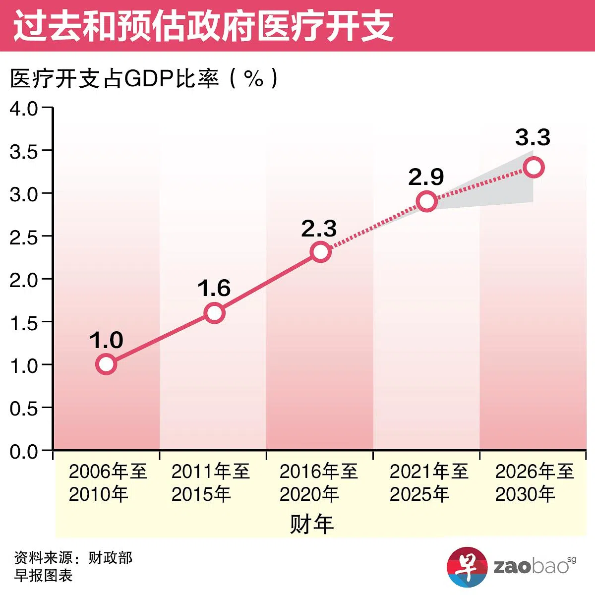 政府医疗开支目前约占GDP的2.3%,不包括冠病疫情相关开支。到了2026至2030财年期间,这预计增加到2.9%至3.5%。