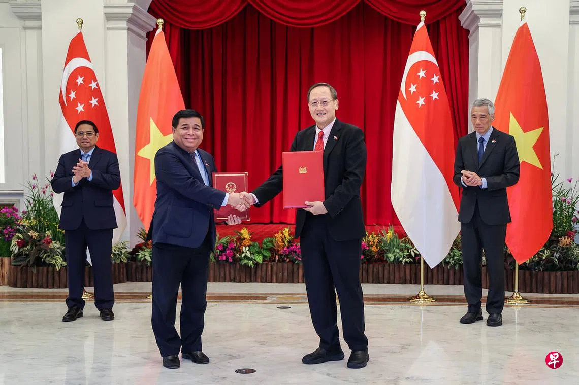 (早报讯)新加坡和越南签署四项备忘录加强多方面双边合作,涵盖数码和绿色经济、贸易和海事等领域。