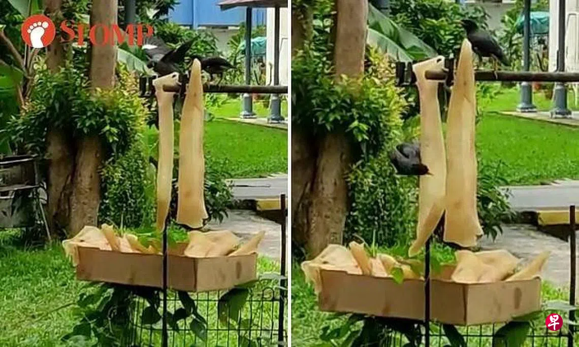 网民说,猪皮挂在那里风干,八哥还享用食物,很不卫生,事后把视频上载到STOMP。