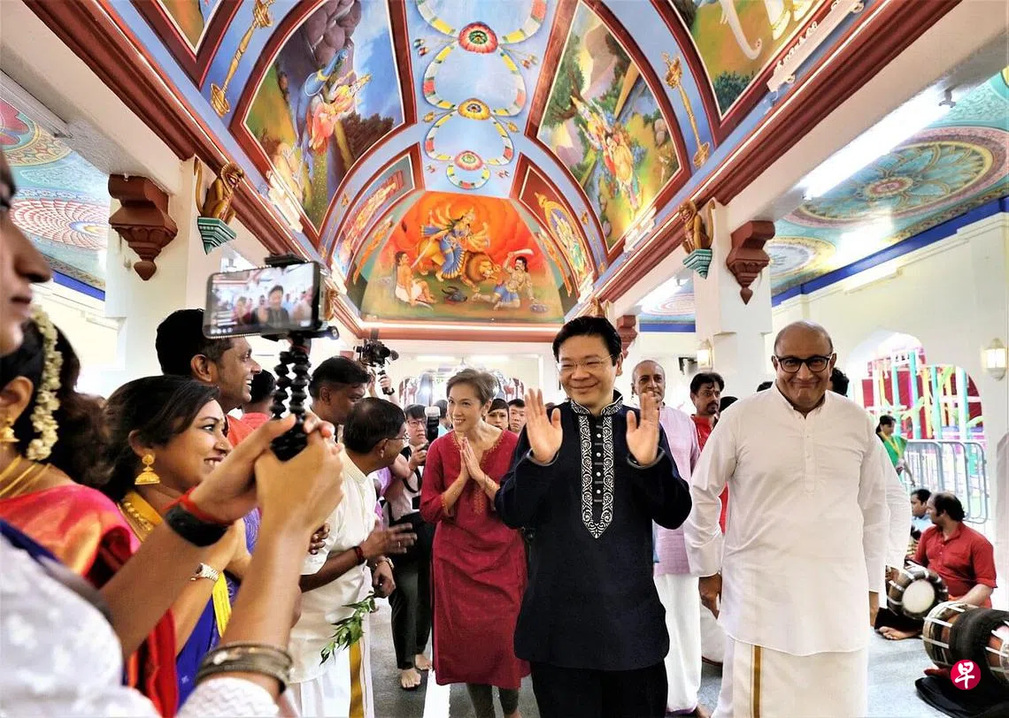 (早报讯)有近200年历史的马里安曼兴都庙完成修复,星期天(2月12日)举行祝圣仪式。虽然仪式开始前下起大雨,但无法浇灭信徒们的热情,约两万名信徒到场观礼祈福。