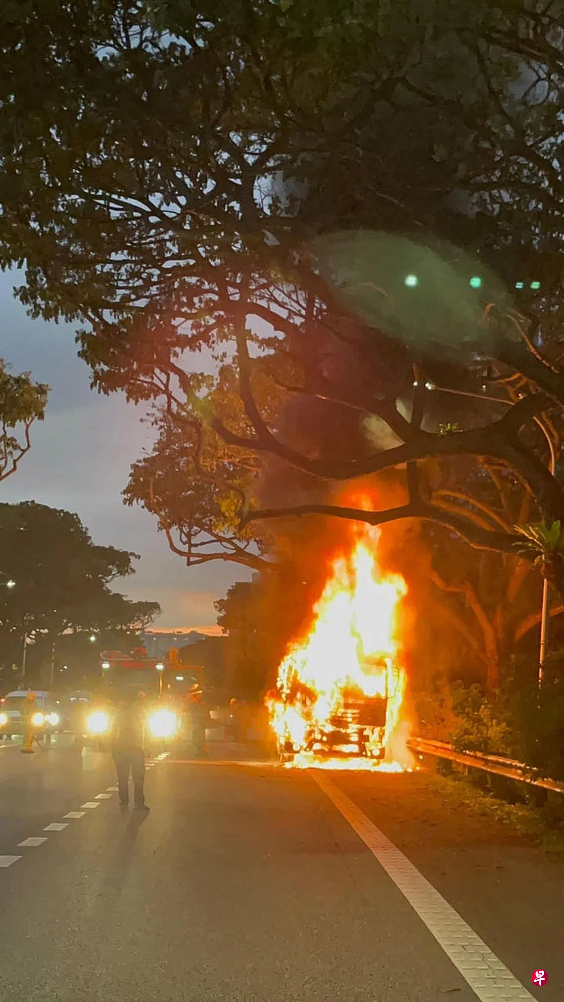 (早报讯)熊熊烈火吞噬倾斗罗厘,所幸驾驶员及时逃脱。
