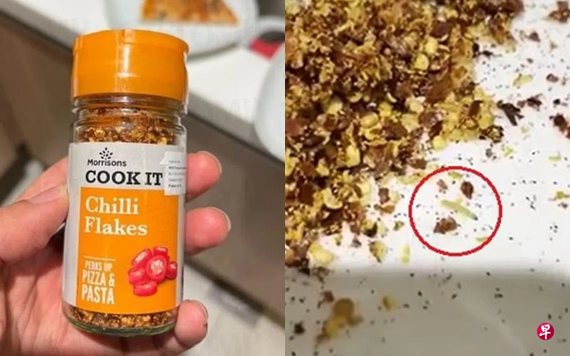 网民联系Stomp投诉,指他和家人要使用从职总平价超市购买的Morrisons辣椒碎做披萨时,赫然发现里头有许多幼虫。
