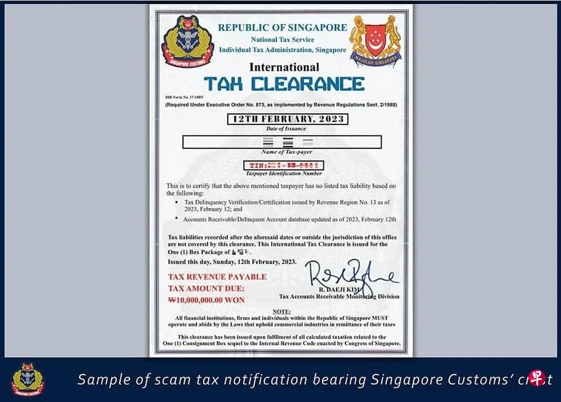 (早报讯)诈骗团伙利用伪造税单,试图骗取税款,新加坡关税局提醒公众切勿上当。