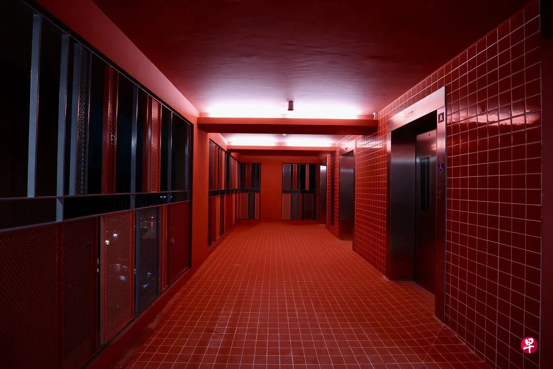 “居民反映红色电梯口的色调太浓,我们已将第640B座组屋电梯口的天花板重新漆成白色,一些墙体也会漆成白色以调和过浓的色调。同区的其他组屋也将逐步改造,瓷砖的颜色则会保留,方便找路也保持该区的特色。”