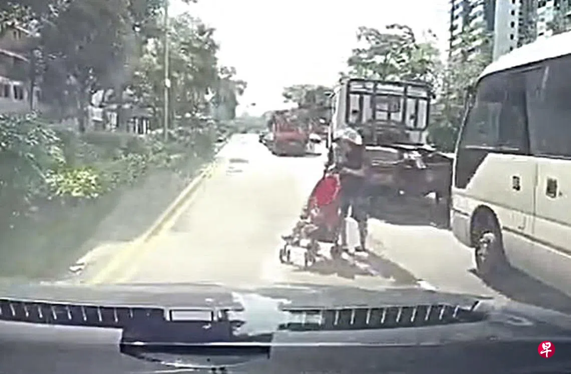 日前有网民在脸书专页Complaint Singapore上传一段视频,画面显示轿车在行驶时,一名妇女突推着婴儿车从旁边出现。