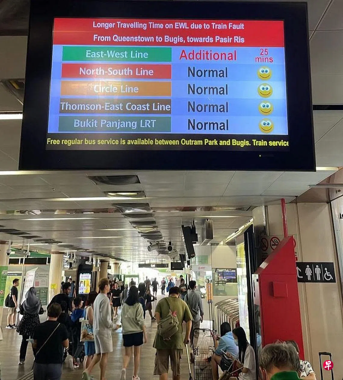 (早报讯)地铁东西线发生故障,受影响的乘客都安全下车。从女皇镇站到武吉士站的地铁服务一度延误25分钟,列车服务已恢复正常。