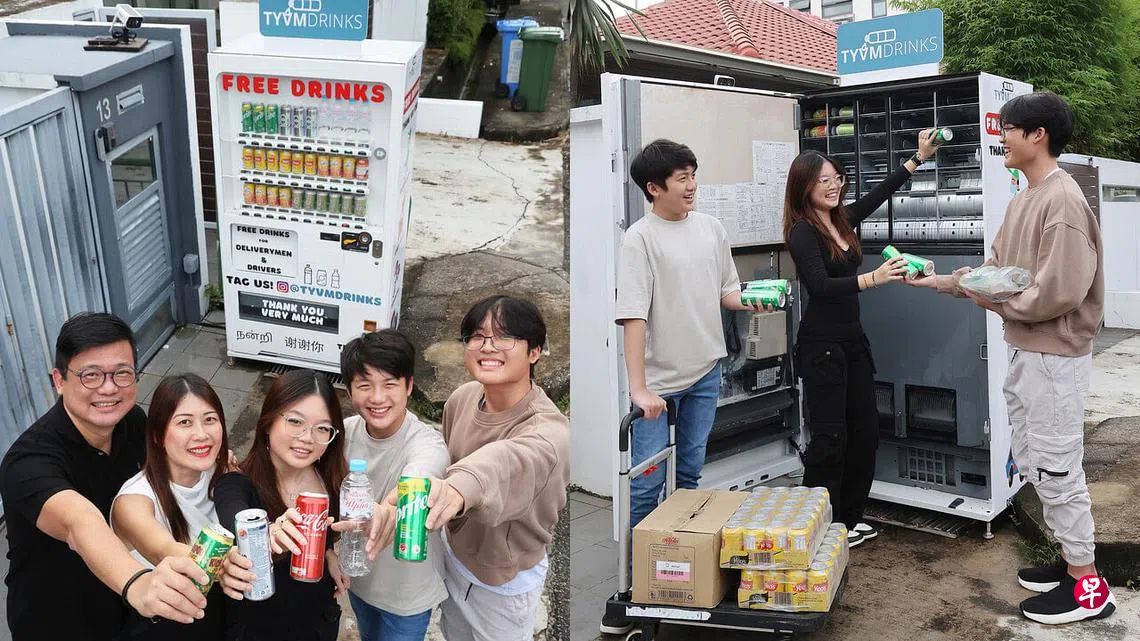 为了给烈日下工作的送货员、邮差与私召车司机提供一瓶沁人心脾的冰爽饮料,住在实乞纳(Siglap)一带雅乐花园(Yarrow Gardens)的一家五口专门从网上订购一台自动贩卖机,还会每周补货。