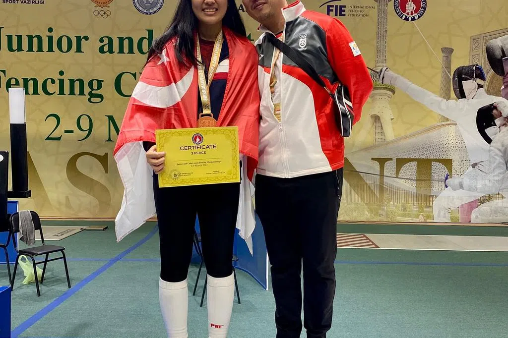 (早报讯)新加坡击剑队在乌兹别克斯坦举行的2023年亚洲青年暨青少年击剑锦标赛再传佳音,由章可美(17岁)、薛贺匀(18岁)、娜比哈芮妲(15岁)、邓咏欣(14岁)组成的女子花剑队在星期三(3月8日)的青少年组(Junior)团体赛中收获一枚铜牌。