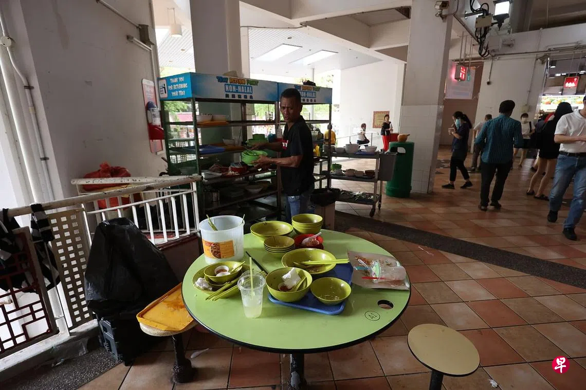 张姓摊主(61岁)则说,自从强制食客自行归还餐盘后,熟食中心聘请的清洁人员总数也减少,原本每两人负责一个区域,如今变成一个人负责一处。年长员工手脚较慢,新员工又需要时间熟悉工作流程,相信也是导致碗碟堆积的原因。