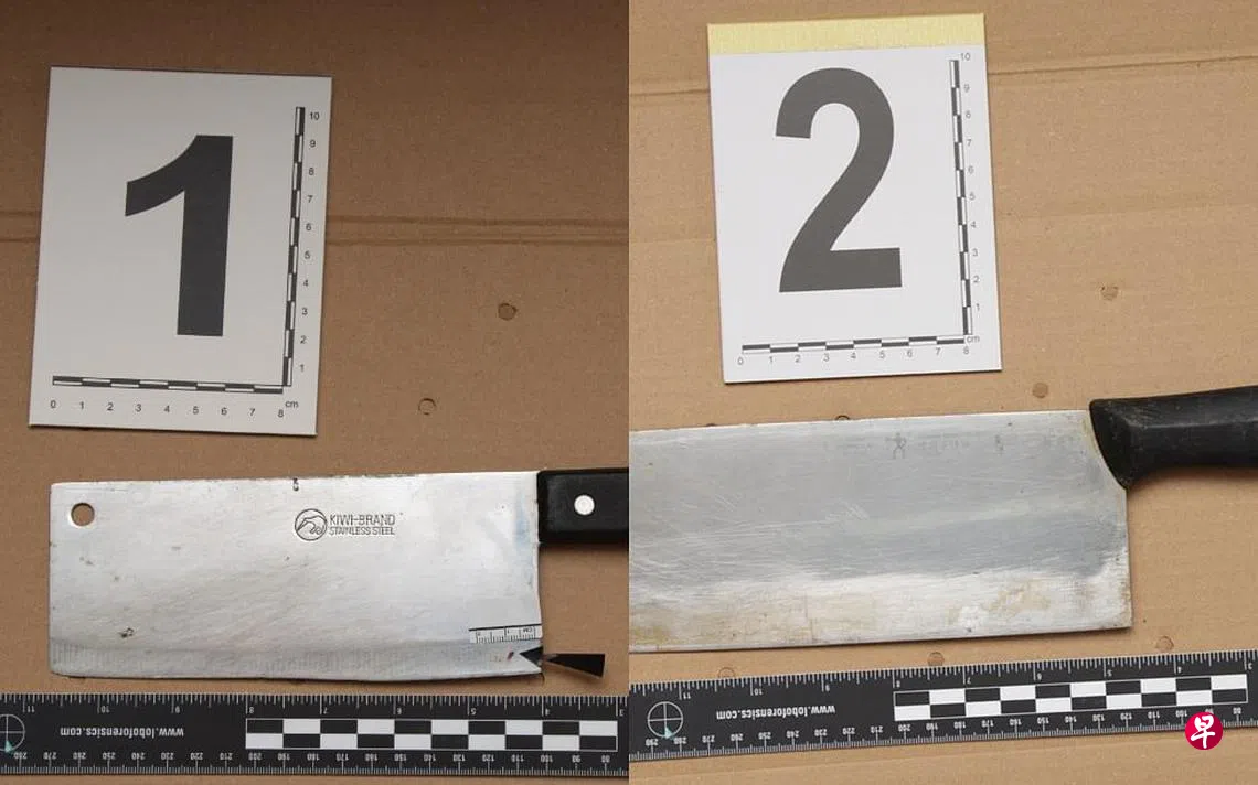 警方也起获两把菜刀作为证物。一般相信,64岁男子涉案时手持双刀。