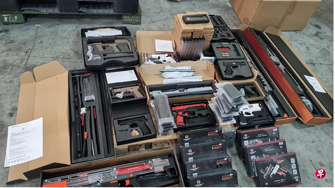 新加坡警察部队星期三(3月15日)发文告说,移民与关卡局人员星期一(13日)在大士港口检查一个集装箱时,发现一批收件地址为本地某处的仿真抢。由于这批共20把仿真枪和54个弹匣的货物没有申请执照,因此交由警方进一步调查。