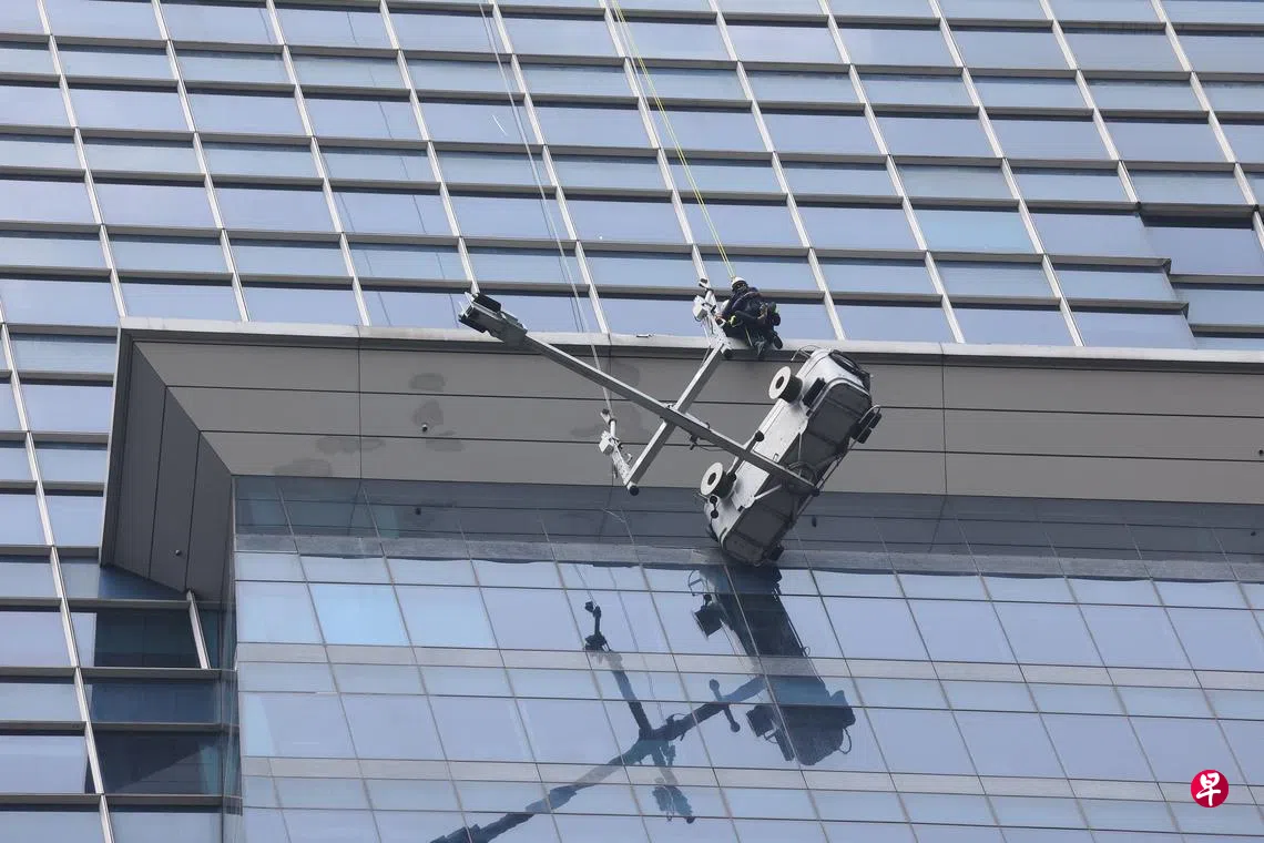 (早报讯)站在机械吊篮清洗大厦外墙时发生机械故障,两名工人受困资金大厦(Capital Tower)40楼,民防部队到场展开高空救援行动。